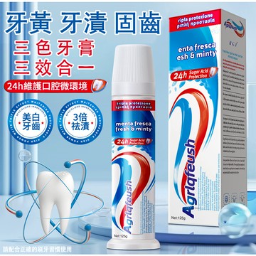 點我下載意大利三色牙膏同款 美白 抗漬 防蛀固齒 三重防護 幫助維護牙齒琺瑯健康 潔白牙齒 牙菌斑 清新口氣 直立按壓式牙膏