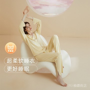 ✨可開發票#奧薇姿帶胸墊睡衣女士春鞦款寬鬆長袖抑菌套頭可外穿傢居服套裝#免運