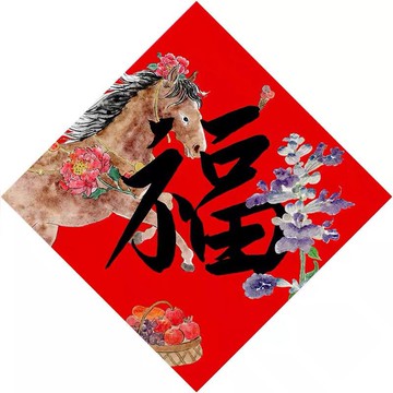 點我下載🔥臺灣出貨🔥2026年馬年原創插畫喜樂福貼新年過年春節對聯裝飾佈置門貼福字