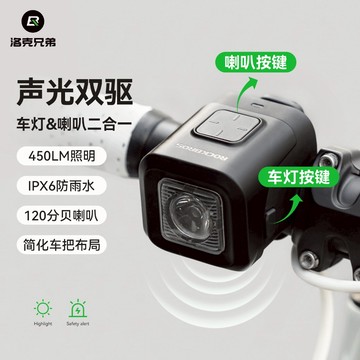 ROCKBROS洛克兄弟旗艦店 自行車夜騎前燈 山地公路單車 照明 強光 騎行裝備 兒童電喇叭