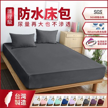 台灣製造/ 100%防水床包式保潔墊-深灰色