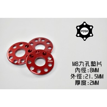 POSH | PK7 鋁合金 九孔 九孔墊片 墊片 鋁墊片 裝飾墊片 8MM M8 紅色 一片