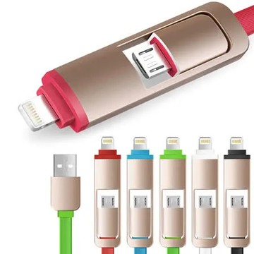 多功能二合一 Apple Lightning & MICRO USB 充電線 傳輸線 扁線設計 具充電功能