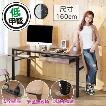 點我下載BuyJM工業風低甲醛防潑水160公分抽屜鍵盤附插座工作桌