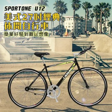 點我下載黑 SPORTONE U12 SHIMANO倒煞車牛角把單速車 美式27吋經典休閒自行車