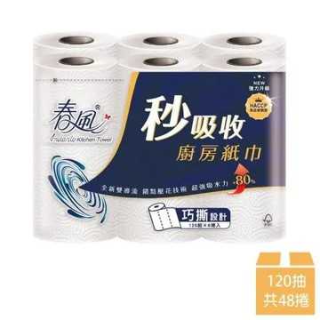 【春風】秒吸收廚房紙巾120組*6捲*8串/箱