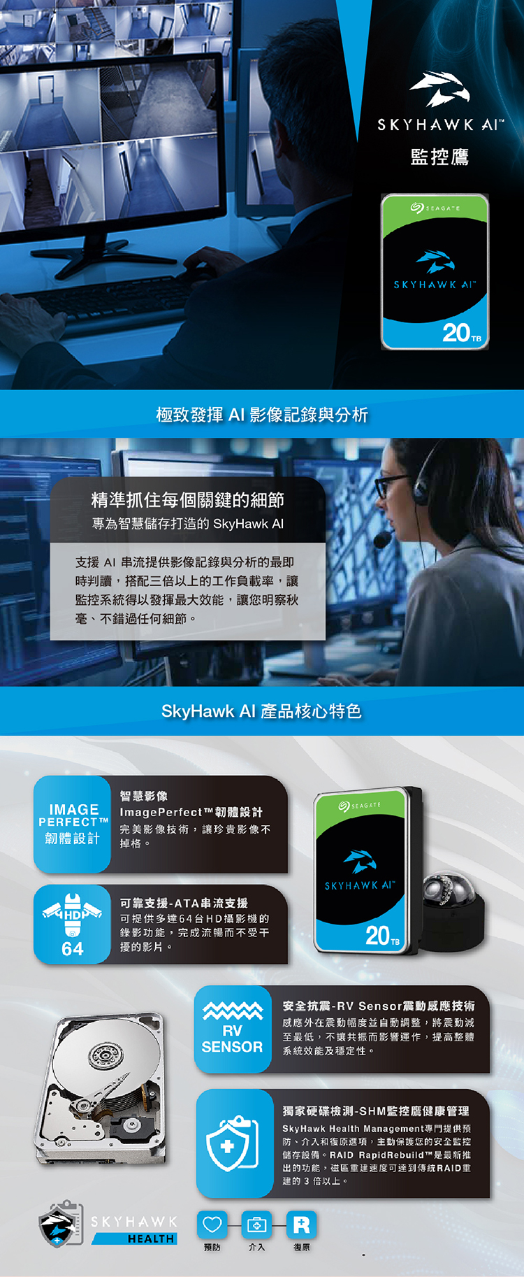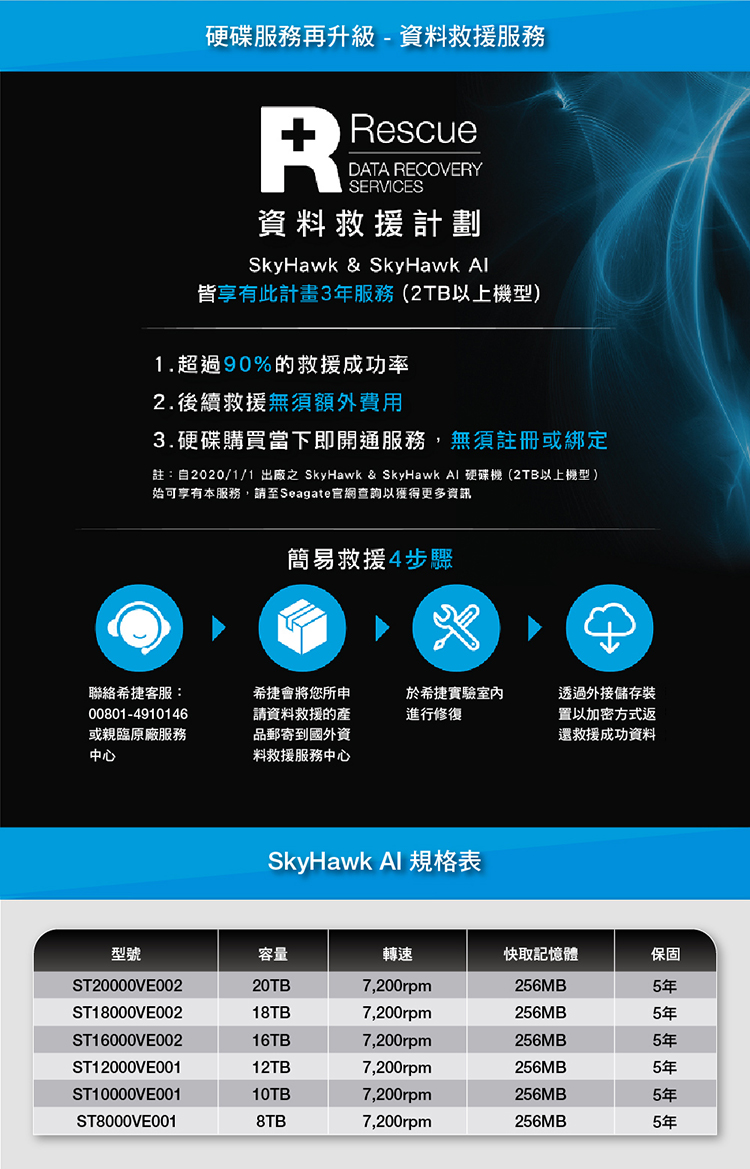 希捷監控鷹Seagate SkyHawk AI 10TB 3.5吋監控碟(ST10000VE001)