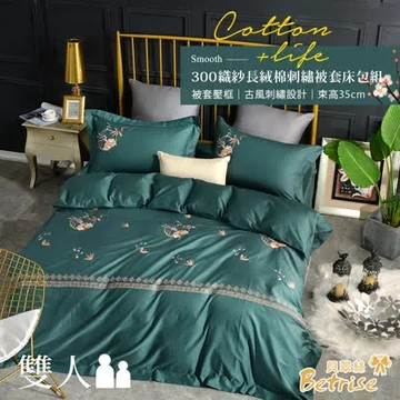點我下載【Betrise】瓔珞綠 莫蘭迪系列 雙人頂級300織100%精梳長絨棉素色刺繡四件式被套床包組(加高包覆35cm)