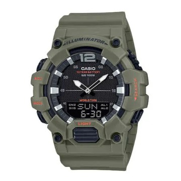 點我下載CASIO 卡西歐 簡約雙顯男錶 橡膠錶帶 墨綠色 十年電力 防水100米(HDC-700-3A2)