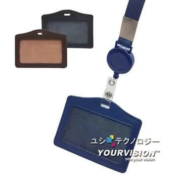 點我下載經典黑 真皮橫式 經典簡約款證件套 證件吊牌 悠遊卡套(附可伸縮加寬掛繩)