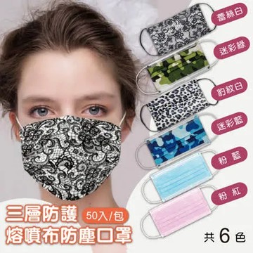 點我下載蕾絲款50片 平面防護口罩50片(任選 迷彩/豹紋/蕾絲/粉藍/粉紅)