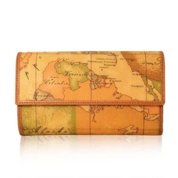 點我下載Alviero Martini 義大利地圖包 扣式零錢中長夾-地圖黃