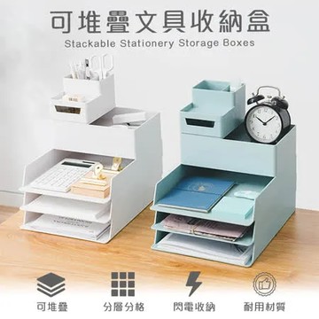 點我下載白 樂嫚妮文青風格可堆疊文具收納盒5件組(A4收納盒x3+小收納盒x1+筆筒x1)