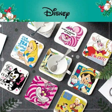 點我下載條紋柴郡貓 【收納王妃】[Disney迪士尼]正版授權 台灣SGS認證不含石綿-愛麗絲&小木偶 珪藻土杯墊(兩入一組)