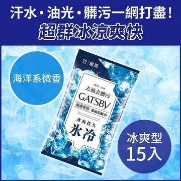 日本GATSBY 潔面濕紙巾(冰爽型) 15張入