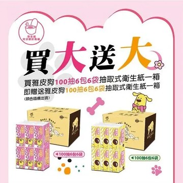 點我下載(買一送一)【雅皮狗】抽取式衛生紙100抽6包6袋/箱