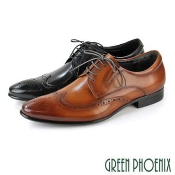 點我下載棕色-39 【GREEN PHOENIX】男 紳士皮鞋 商務皮鞋 牛津鞋 漸層 布洛克 雕花 全真皮