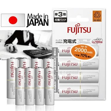 點我下載日本富士通 Fujitsu 低自放電鎳氫充電電池 (3號1900mAh+4號750mAh各4顆)送電池盒