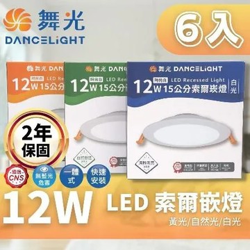 點我下載正白6500K DanceLight 舞光 LED 15CM 12W 索爾 崁燈 6入組(一體成形散熱佳 快速安裝)