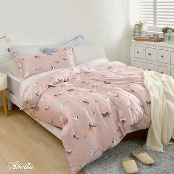 點我下載英國Abelia《喵喵時光》雙人天絲木漿四件式兩用被床包組(共兩色)-粉色