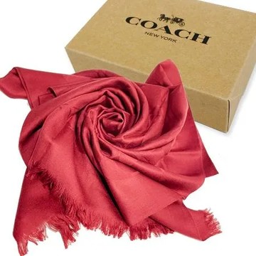 點我下載【COACH】C LOGO羊毛混蠶絲絲巾圍巾禮盒(深紅)