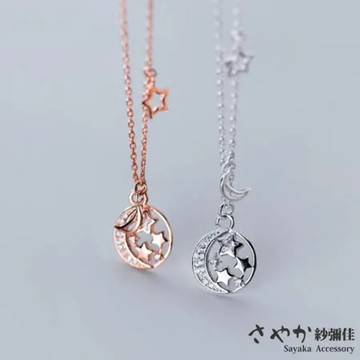 立即體驗單一規格 【Sayaka紗彌佳】925純銀星月天空鑲鑽造型項鍊