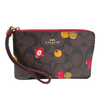 COACH 深咖啡色可愛圖案PVC材質手拿包
