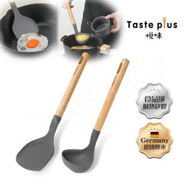 點我下載【Taste Plus】悅味 德國櫸木柄 矽膠鏟+矽膠杓 矽膠包不鏽鋼 不易變形(不沾鍋專用)-2件組