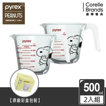 點我下載(兩入組)【美國康寧 Pyrex】SNOOPY 史奴比耐熱玻璃單耳量杯500ml