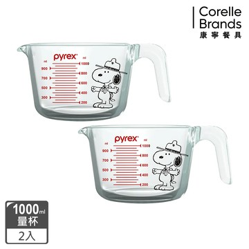 點我下載(兩入組)【美國康寧 Pyrex】SNOOPY 史奴比耐熱玻璃單耳量杯1000ml