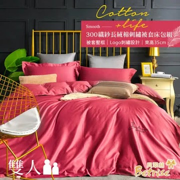 點我下載【Betrise】殷紅 純色系列 雙人頂級300織100%精梳長絨棉素色刺繡四件式被套床包組(加高包覆35cm)