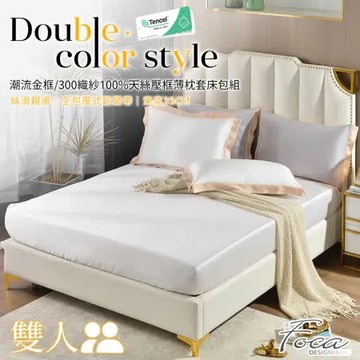 點我下載【FOCA別緻白】雙人-潮流金框 頂級300織紗100%純天絲壓框薄枕套床包三件組