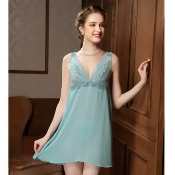 點我下載【思薇爾】珍珠花頌系列連身蕾絲性感小夜衣(水氧綠)