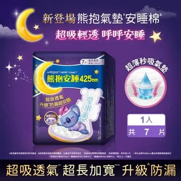 點我下載【好自在Whisper】熊抱安睡棉/衛生棉/夜用衛生棉 量多夜用 42.5cm 7片x1包