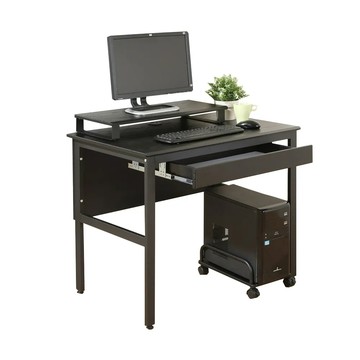 點我下載黑橡木色 《DFhouse》頂楓90公分工作桌+1抽屜+主機架+桌上架-黑橡木色