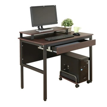 點我下載胡桃色 《DFhouse》頂楓90公分工作桌+1抽屜+主機架+桌上架-胡桃色