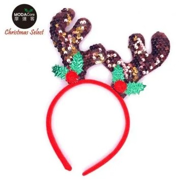摩達客耶誕派對-咖啡色亮片鹿角聖誕髮箍
