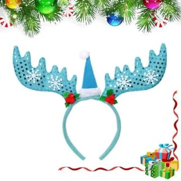 摩達客耶誕派對-冰藍亮片大鹿角髮箍