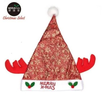 摩達客耶誕派對-閃亮金雪花金蔥布紅色小牛角聖誕帽