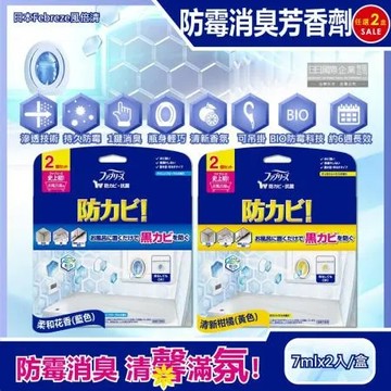 點我下載柔和花香(藍色)*2盒 (2盒4入超值組)日本Febreze風倍清-浴廁BIO防霉除臭香氛W空氣芳香劑7mlx2入/盒(按鈕型1鍵消臭)