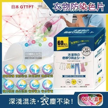 點我下載日本GTTPT-強力吸色除塵防串染護色拋棄式洗衣防染色片60入/大盒(神奇防染魔布,深淺衣物混洗,洗衣機專用)