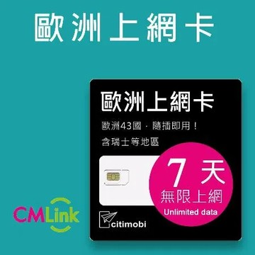 點我下載【citimobi 上網卡】歐洲43國上網卡 - 7天上網吃到飽(1GB/日高速流量)