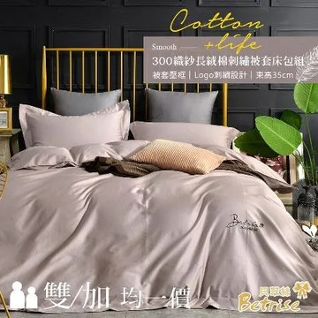點我下載01潽藍-加大床包被套組 【Betrise多款任選】雙人/加大 均一價 純色系列 頂級300織精梳長絨棉素色刺繡四件式被套床包組