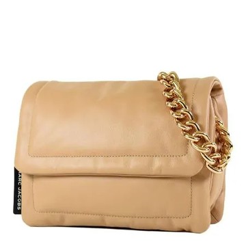 點我下載MARC JACOBS 滑面皮革磁吸翻蓋鍊帶肩背/斜背二用包-焦糖拿鐵色
