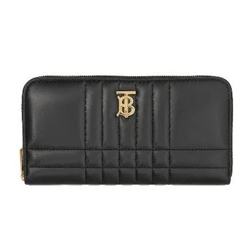 點我下載BURBERRY Lola TB LOGO格紋絎縫羊皮拉鍊長夾(黑色)