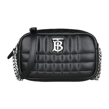 點我下載BURBERRY LOLA銀字金屬LOGO絎縫羔羊皮拉鍊斜背包(迷你/黑)