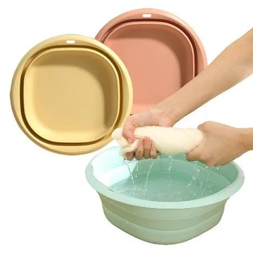 點我下載粉鵝黃色 日本SP SAUCE攜帶式5公升中型折疊臉盆