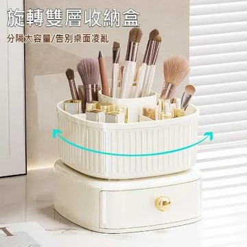點我下載輕奢風雙層收納桶 旋轉化妝刷收納桶 桌面置物盒 分隔收納 抽屜 整理盒 刷具/文具/遙控器
