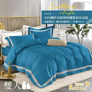 點我下載【Betrise】琉璃藍 典雅系列 雙人 頂級300織100%精梳長絨棉素色鏤空四件式被套床包組