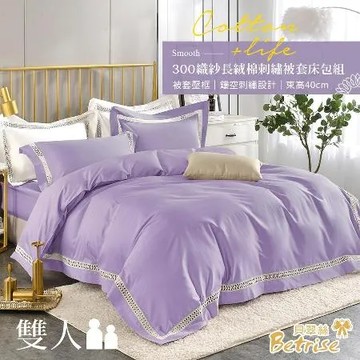 點我下載【Betrise】華棠紫 典雅系列 雙人 頂級300織100%精梳長絨棉素色鏤空四件式被套床包組